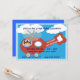 This customisable helicopter birthday party invite features a red chopper and customisable text.