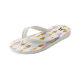 Cute children's flip flop slippers done in white with a chocolate, strawberry and vanilla ice cream cone pattern. Personalise the single letter monogram to suit your needs.