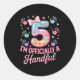 Kids I'm Ly A Handful Five 5th Birthday Girls Boys Classic Round Sticker