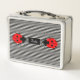 This is a standard metal lunchbox that appears to work just fine. We designed this box ourselves with an uploaded photo and custom text on the front and back. It looks absolutely beautiful except the front of the lunchbox is not centered like it shows in the photo. The print borders don't align with the inset flat part of the box where the preview photo online showed it perfectly centered in there. The back looks nice and centered though.