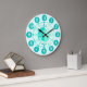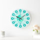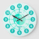Kids graphic wall clock shaded to help assist your child to read a clock. This colourful clock in shades of mint aqua and green works as a teaching aid which includes minutes and hours and coded past and to's making child's play of telling the time. Designed exclusively by Sarah Trett. A great addition to a child's bedroom who is learning to read a clock face.