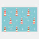 Kids Lighthouse and Anchor Pattern on Blue Wrapping Paper Sheet