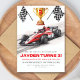 A fun birthday invitation for kids featuring a racing theme with cars, checkered flags, and bright colors. Perfect for inviting friends to a Little Racers birthday celebration.