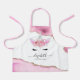 Unique girly cooking apron featuring pink and gold glitter agate crystal edges, a cute unicorn face with girly florals, the childs name in a elegant calligraphy font, and a personalised saying that can be deleted.