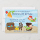 This cute customisable mermaid birthday party invitation features a scene under the sea with three mermaids and a treasure chest full of gifts.
