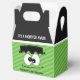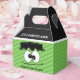Kids Monster Birthday Party Favour Boxes, Halloween Favour Box. Celebrate your party with this cute Frankenstein Monster Mash party favour box! This gable style favour box has a green stripe background with a cute Frankenstein face and head where you can personalise the saying at the bottom to fit your Halloween event. The gable of the favour box is black with the wording "It's A Monster Mash".