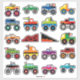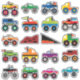 Delight your child with this 20-sticker pack of cartoon monster trucks.