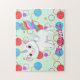 Cute Kitty Unicorn jigsaw puzzle for kids with a circles pattern background. Personalise with his name to make this a fun gift for any child!