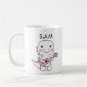 Enjoy your favourite drink with this personalised, fun, and playful pink, black and white coffee mug! Featuring a cute dancing dino and customisable with your child's name, this charming mug adds a touch of joy to any kid's day. Perfect for little dino lovers, it's a great gift for birthdays or any special occasion!