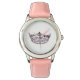 Kids pink leather strap watch shown with a pageant crown print. Customise this watch or buy as is.
