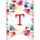 Colourful Kids Painted Handprints Happy Birthday Bunting Flags, which are ideal for your kids and toddler craft parties. This kids birthday bunting design shows an all-over print of colourful handprints with HAPPY BIRTHDAY spelt out in red typography inside a white circle on each flag. Matching party supplies and gifts are available. Choose from a wide selection of kids designs by Berean Designs. Alternative customisable version available.