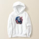 Kids hoodie is for boys and girls and is shown in white with a festive patriotic eagle flag print, this t-shirt is made of quality materials and craftsmanship.
