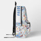 Send your kids into the wild blue yonder with this personalised aviation-themed backpack! Customised with their name, this fun watercolor print includes aeroplanes, rockets, stars, clouds, helicopters, and bunting in shades of blue, yellow, and red on a white background. Ready for sky-high travels!