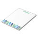 Kids Personalised Chevron Modern Trendy Simple Note Pad. Customise these fun classic chevron striped pad of paper with your child's name at the top in bright green font. Modern and trendy green and blue chevron stripes line the bottom edge of these notepads. Masculine and simple colours are great for boys and teens.