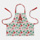 Kids personalised Christmas apron, for baking all those holiday cookies and treats, red and green snowflakes, their first initial with santa hat and their name.