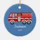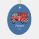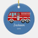 Kids Personalised Red Fire Truck Christmas Ceramic Ornament