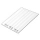 This music stationary for kids has 3 grand staves per page that is ideal for writing music for piano or other keyboard instruments. Designed with wide rule for use by kids and beginners, each grand staff measure approximately 1 5/8" tall and is 2x the average size of music printed for adults. This versatile music notepad can be used for music lessons, exercises, or encouraging kids to create their own songs and piano compositions . . . a must have for every young musician. For toddlers and kids who need extra large print, looks for Extra Wide Rule music manuscript notepads by Mozartini.