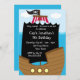 Avast, me hearties! This pirate birthday party invitation features a big pirate ship flying a Jolly Roger. Completely customisable.
