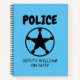 Kid's police themed notebook with sheriff star. Cute school accessory for children who like to play cops and robbers. Perfect for future police officer, cadet, agent, sheriff, security guard, patrol officer, cadet, constable etc. Create one for son, grandson, granddaughter, nephew, play friends etc. Fun law enforcement theme Birthday presents for small boys and girls.