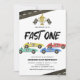 First birthday planning? We've got you covered. Check out our Boys Racing Car 1st Birthday Invitations. Simple, stylish, and oh-so-fun! Featuring a simple white background, and adorned with whimsical watercolor race cars, roads, chequered flags, and a trophy. Our fast one celebration template is a breeze to customise, making your party planning a piece of cake.