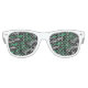 Retro party shades shown with a black, green and grey coloured abstract print