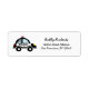 Kid's Return Address Labels with cute police car. Black and white vehicle illustration for children. Personalised label for boy's baby shower, Birthday party etc. Also handy as property of / this book belongs to stickers. Rectangle labels printed with your family surname / last name, street, city, state and zip code.