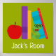 Kid's room customisable name poster with a cute illustration or bookworm with apple illustrations against a customized grey background. The text can be customized to suit your needs. Suitable for a poster for a children's room.
