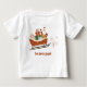 Cute gender neutral Christmas day children's t-shirt with editable text and featuring a cute Santa Claus, sleigh and presents.