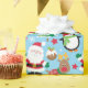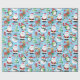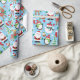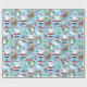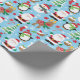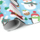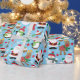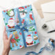 An Adorable Blue Colourful Kids Christmas Wrapping Paper Of All Of Santa's Friends Reindeer, Snowmen and Penguins
