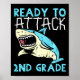 Kids Shark Ready To Attack 2nd Grade Second First Poster