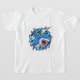This kid's shirt is shown with a shark art print, Shirt is shown in cotton with a crew neck and short sleeves.