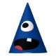 Kids Silly Monster Face Monsters Party Dark Blue or Choice of Colour Party Hats. Customise to change dark blue background to any other colour monster face. One eyed, one toothed silly monster face on the front of this fun hat. Kids monster party themed party supplies and treats.