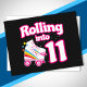This skate party design is perfect for a roller skating party or birthday theme for an 11 year old. If the birthday girl or birthday boy loves to roller skate, they will LOVE this skate party design! Features retro style "Rolling into 11" birthday quote with cool roller skate graphic with rainbows & stars that's fun & unique. Fun roller skate party design for an 11th birthday!