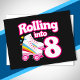 This skate party design is perfect for a roller skating party or birthday theme for an 8 year old. If the birthday girl or birthday boy loves to roller skate, they will LOVE this skate party design! Features retro style "Rolling into 8" birthday quote with cool roller skate graphic with rainbows & stars that's fun & unique. Fun roller skate party design for an 8th birthday!