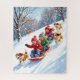 Kids Sledding with Dogs in Snowy Winter Wonderland Jigsaw Puzzle
