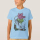 100% cotton so perfect for summer, It is a nicely designed t-shirt, the fabric is soft and the seams finished well, the body of the t shirt has no side seams. I bought a medium size for my two grandsons, aged 9 and 8 it will be slightly big on them but I would rather that than too small