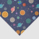 A fun and modern solar system pattern with colourful planet, star and sun illustrations against a dark blue background. Great for a child's birthday or special occasion