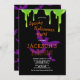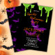 Are you searching for a fun spooky Halloween birthday party invitation that will give your guests goosebumps? Look no further than this invitation featuring green slime and purple bats on a black backdrop. Use the design tools to personalise the text, font and colours. Also available as digital download.