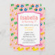 Planning for kids who have birthdays in the summer? A colourful pool party theme is perfect to chill out in the heat and have a fun time. Make a splash with guests with this cool pink birthday invitation that has cute pool party elements arranged in a pattern. It includes items like green trunk, blue bucket with a fish icon, a float, a duckie float, a toy water gun, a pink swimming costume, a snorkelling mask and a big ball. Perfect for anyone who has a backyard pool or inflatable pool or holding the event at a water theme park for the birthday girl. Personalise easily with your party details.