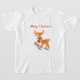 This holiday t-shirt for kids is shown in white with a cute festive Rudolph print.