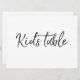 A stylish hand lettered "Kids Table" sign