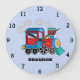 Kids Train Boys Blue Custom Name Large Clock