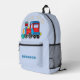 Blue, train, transport, locomotive, vehicle, backpack for kids. Custom, Kids, Name, steel blue boys backpack. Personalise it with your child's name.