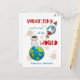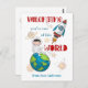 A fun Space design postcard for the valentine day holidays featuring an astronaut sitting on the world with a space rocket near by and a background of planets and shooting stars. The card has the wording - Valentine you're out of this World in a fancy red and blue font . A sweet and cute design for kids and teachers to give to other boys and girls and teachers for valentines day. Can be personalised by amending the from name at the bottom of the card and to details can be added on the back if needed .