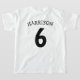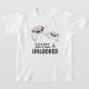 These cool gamer tshirts featuring two gaming control pads over a white background, with playful text that reads "LEVEL 6 UNLOCKED" and "THEIR NAME AND AGE". All font styles and colours can be changed by clicking on the customise further link after personalising.