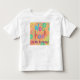 This tee shirt is great for a toddler or small child to wear to his or her birthday party or for the day on the birthday to feel extra special. The colourful word art design says Woohoo with the customisable words "its my birthday". The background is textured with ombre colours orange and lime green and has flowers and line outline flowers. Colours: Turquoise teal blue orange lime green purple.