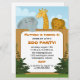These adorable personalised birthday party invitations are great for kids who love zoo animals. Each invitation features a charming illustration of an elephant, lion and giraffe peeking over a fence. The invitations are ready to personalise for a party at the zoo, or a zoo-themed or safari-themed birthday party.