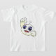 100% cotton so perfect for summer, It is a nicely designed t-shirt, the fabric is soft and the seams finished well, the body of the t shirt has no side seams. I bought a medium size for my two grandsons, aged 9 and 8 it will be slightly big on them but I would rather that than too small
