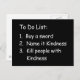 To Do List: 1. Buy a sword 2. Name it Kindness 3. Kill people with Kindness
