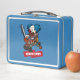 A crazy clown on a metal lunch box. Use "Personalize this template" to tweak the "KILLER CLOWN" text and create a unique, customized item. Featuring a blue haired clown character with red nose and striped outfit carrying an orange chainsaw. A villain in the tradition of horror films and Halloween.